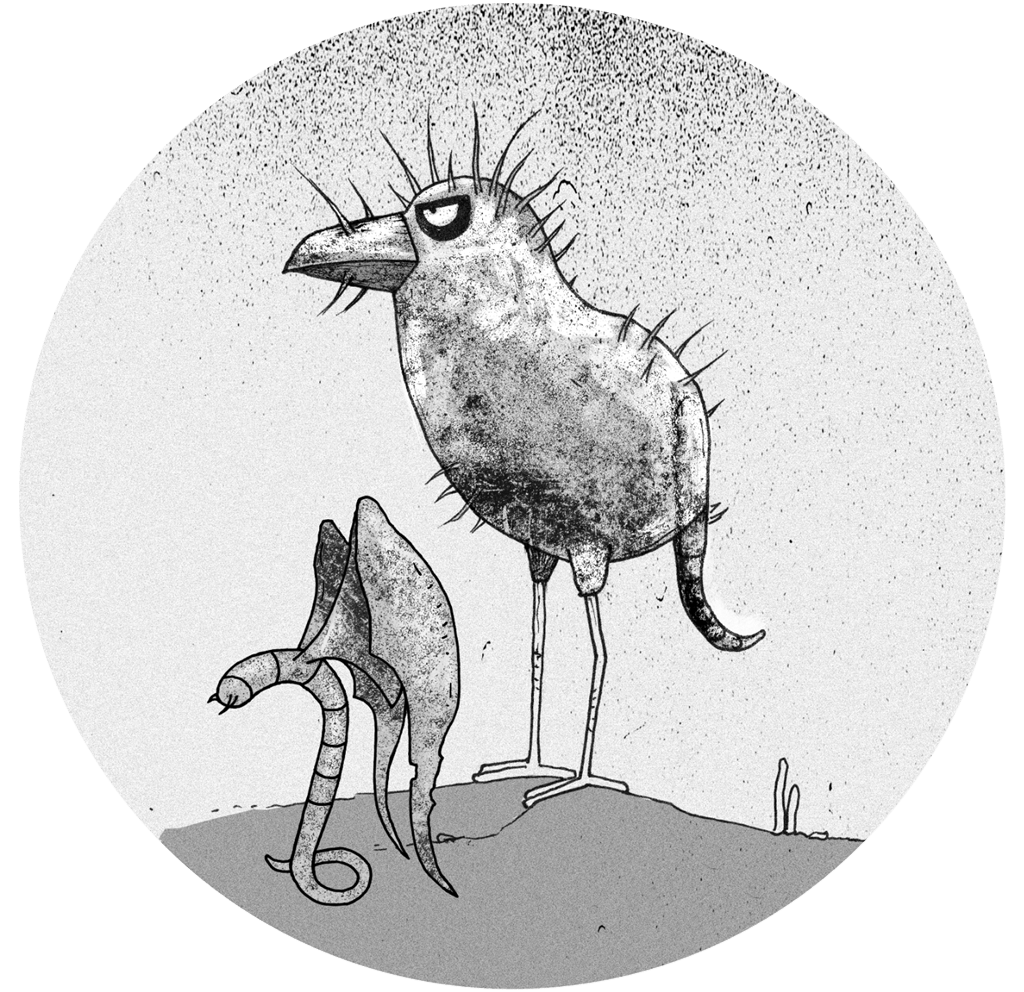 Ave que habita en las cercanías del pantano, en la zona inmediata entre el monte y la orilla del río. Si bien pertenece al grupo de las aves no tiene plumas, sino que su piel está recubierta de filamentos muy venenosos.