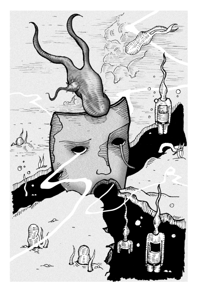 Llegado el momento el insecto busca un Hongo de Cabeza Redonda y deposita su único huevo en su interior. Éste le sirve de protección contra los elementos. Y será una especie de útero hasta su siguiente transformación.